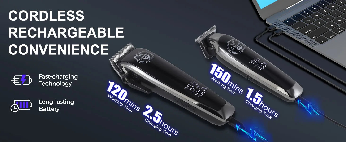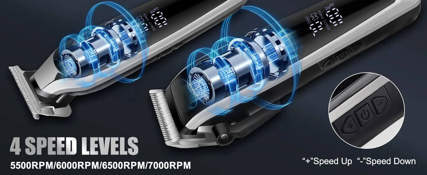 HATTEKER Men's Professional Electric Hair Clippers Set with 4-Level Power Digital LCD Display Precision Oil Head Sculpting 2-pcs
