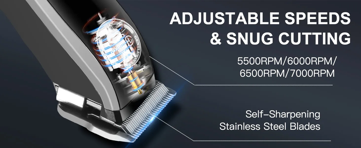 This HATTEKER electric clipper set comes with a remarkable 4-level power adjustment feature. Whether you're dealing with thick, coarse hair or fine, soft strands, you can easily customize the cutting power to suit your needs. For thick hair, simply switch to a higher power level to ensure a smooth and efficient cut. For more delicate areas or finer hair, lower power levels provide the precision you need, allowing you to achieve a perfect hairstyle every time.